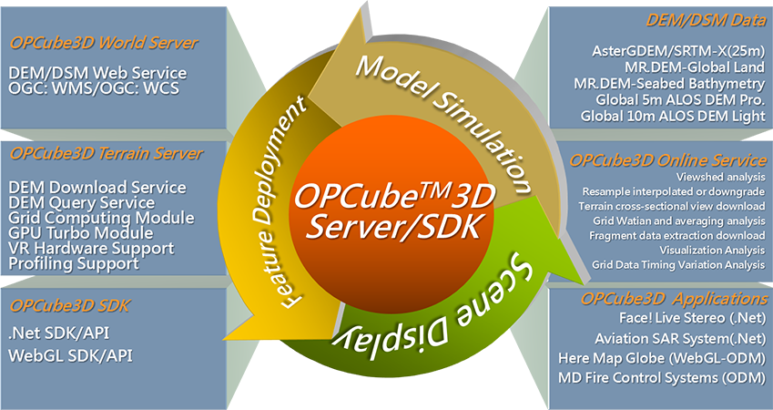 - Support the server-end satellite images and DEM work smoothly on OPCube 3D server. And the images format fit all emergency disaster response situations.