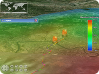 - Overlapping the latest seismological report with GeoRSS onto three-dimensional sphere scene.